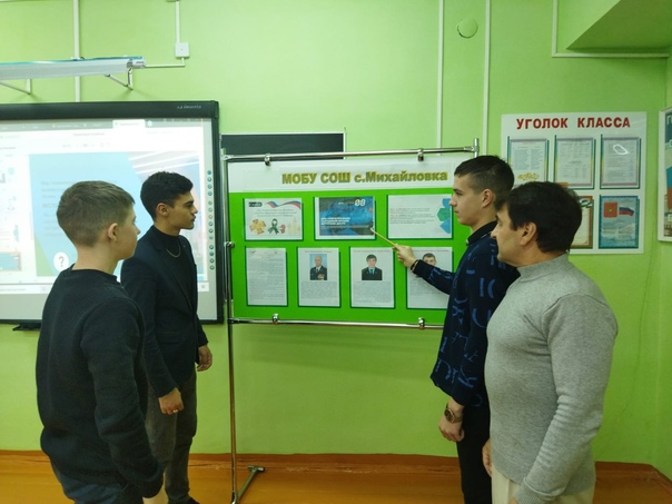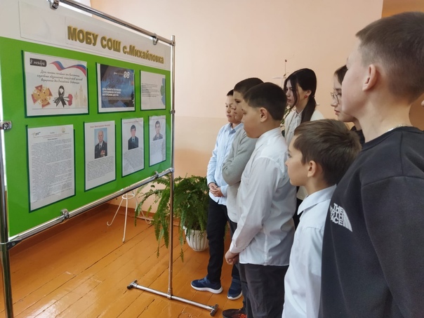 В этот день советник по воспитанию в школе оформил информационный стенд и провёл Урок мужества "Герои нашего времени"