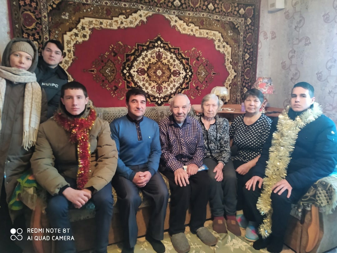 Ученики 10 класса навестили и поздравили с наступающим Новым годом семью ветеранов педагогического труда Николаевых - Константина Арсентьевича и Сагеру Минибаевну.