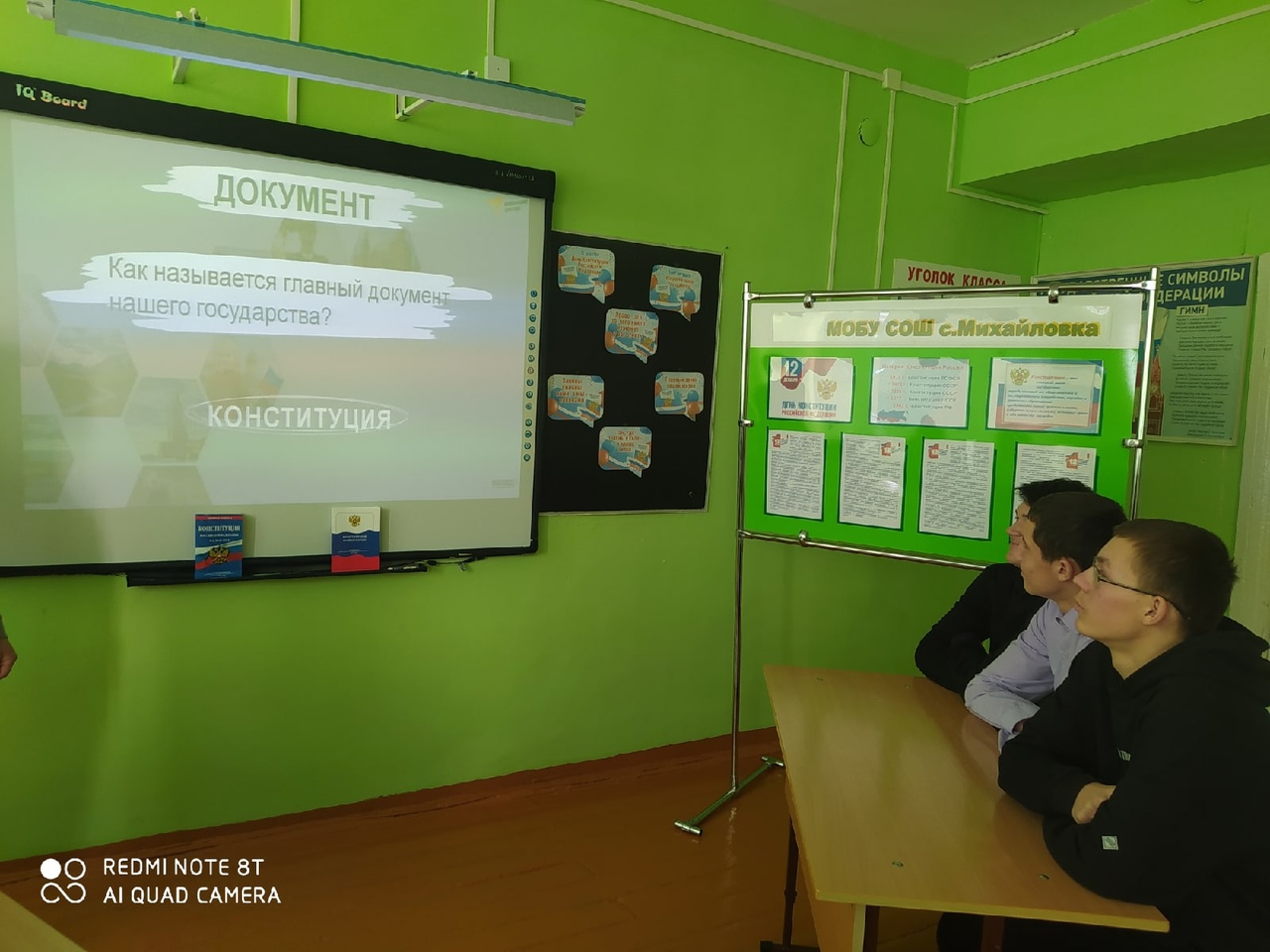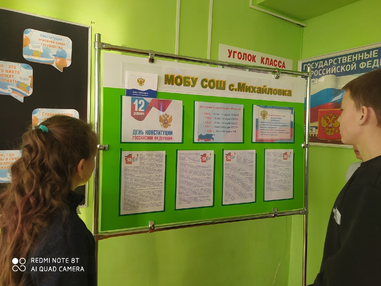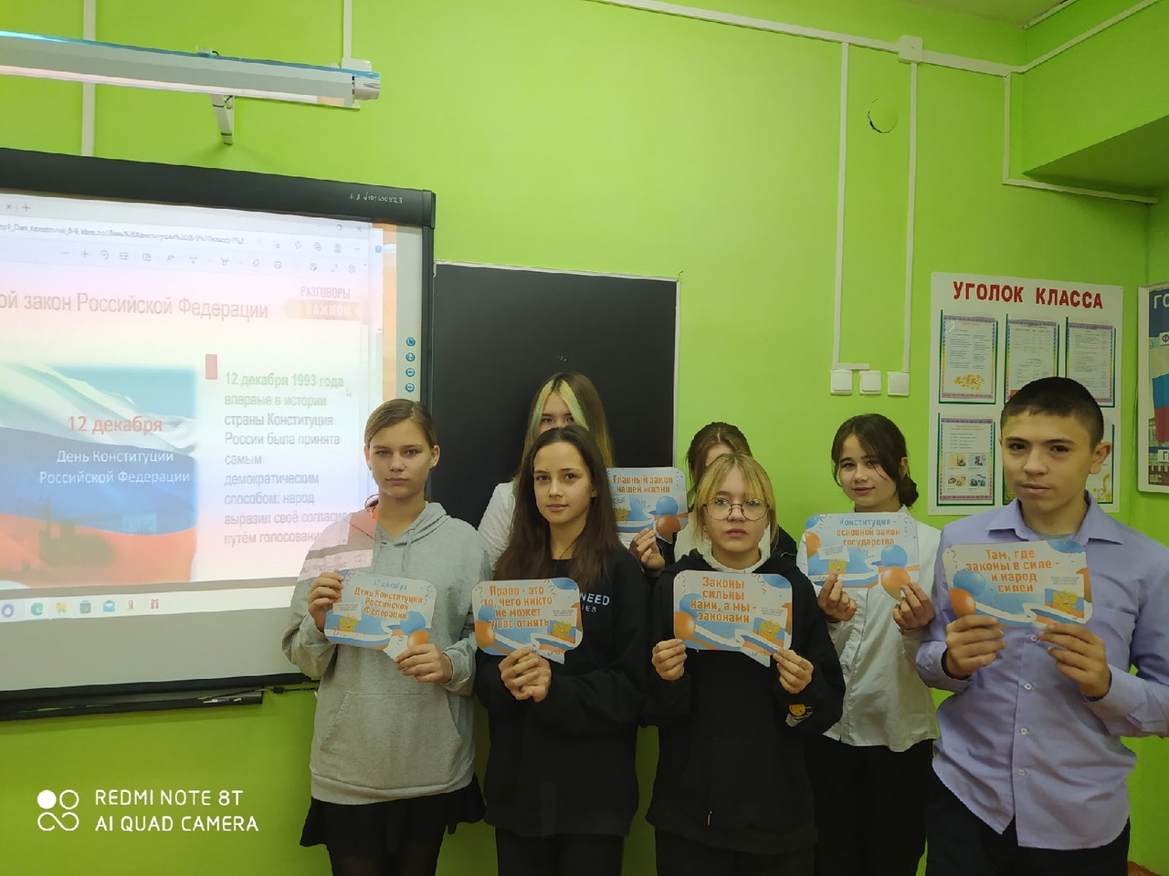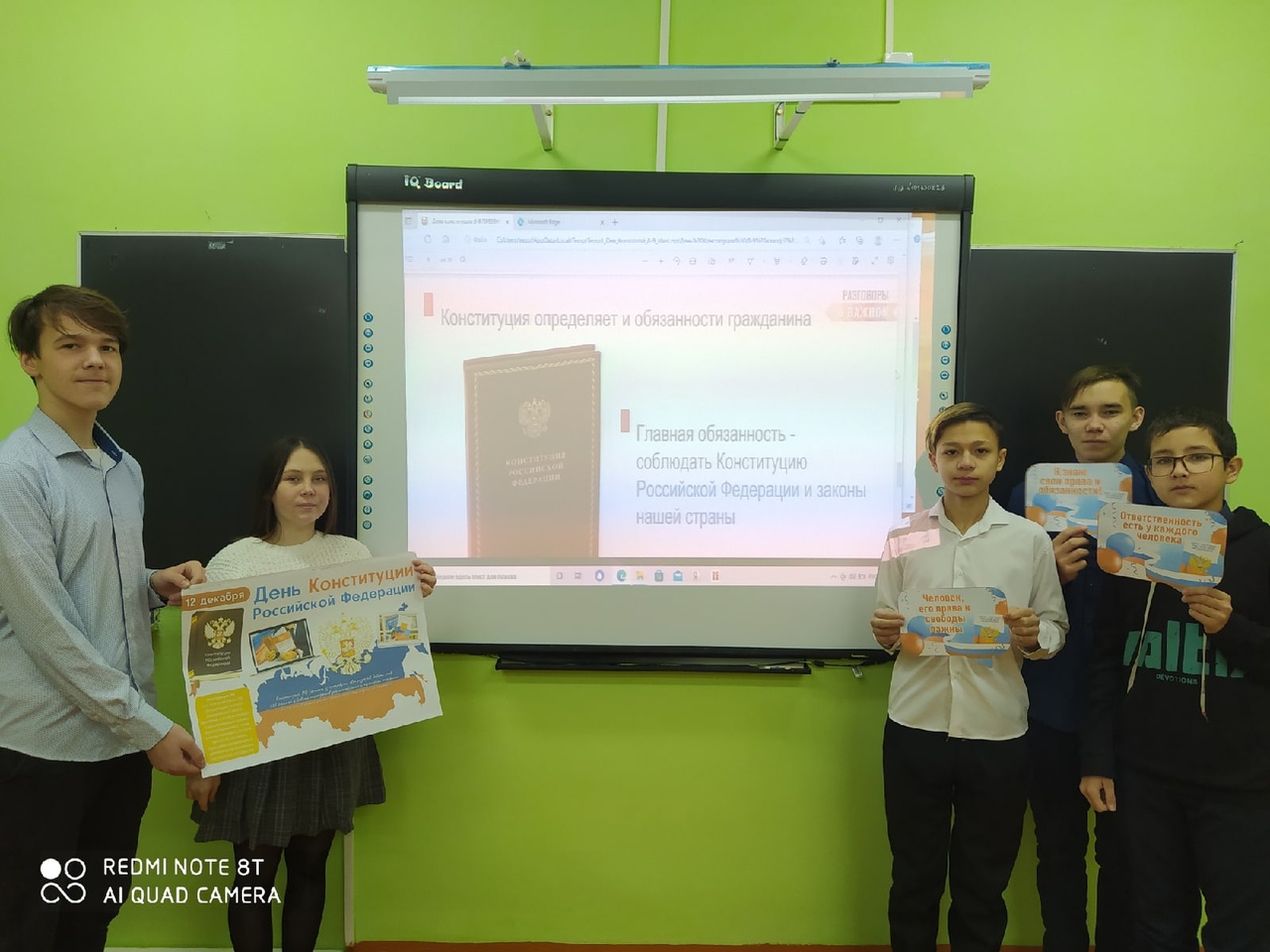 В течение десяти с лишним лет День конституции являлся официальным выходным. Однако, в декабре 2004 года Госдума приняла поправки в Трудовой кодекс РФ, изменяющие праздничный календарь России. Закон предусматривает отмену выходного дня в День Конституции, а сам праздник в июле 2005 года причислен к памятным датам России. Несмотря на это, 12 декабря по всей стране проходят различные мероприятия в честь главного закона государства. В школе в рамках внеурочной деятельности «Разговоры о важном» проведены занятия «День Конституции», в старших классах организована интеллектуальная игра «Что мы знаем о Конституции», ребята присоединились к Всероссийской акции, посвящённой Дню Конституции Российской Федерации – «Конституционный диктант», также сегодня наша ученица в торжественной обстановке получила паспорт.