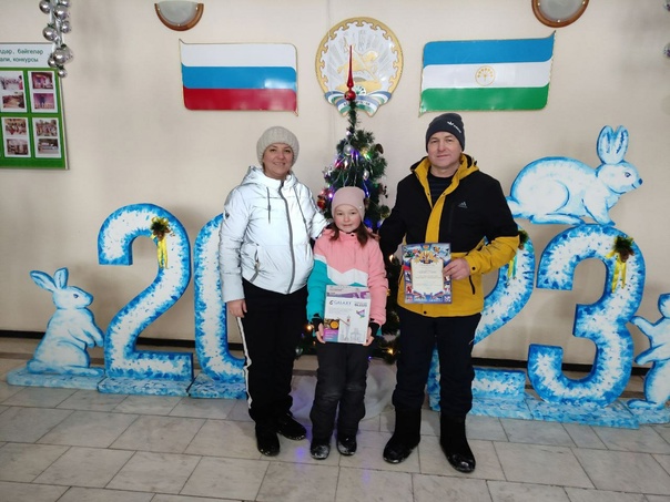 Поздравляем семью Гизетдиновых - папу Мунира Амировича, маму Екатерину Владимировну и дочь Дарину - призёров муниципального этапа Республиканского фестиваля "Новогодние семейные игры -2023"