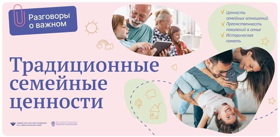 Сегодня занятия "Разговоры о важном" прошли на тему «Традиционные семейные ценности». Говорили о том, что такое дружная и крепкая семья, вспоминали, какие в нашей стране есть праздники, посвященные семье и ее членам. Обсуждали значение слова «семья», необходимость преемственности поколений, делились рассказами о своих семейных древах и традициях. Обучающиеся высказывали мнение о необходимости изучения истории своей семьи и сохранении памяти о ней в альбомах, летописях. В старших классах обучающиеся после просмотра фрагмента фильма «Однажды двадцать лет спустя» говорили о важности сохранения традиционной семьи и поддержке государством молодых и многодетных семей. Также вспомнили о приближающемся весеннем празднике – Международном женском дне и с помощью шаблона создали открытки-благодарности для своих мам.