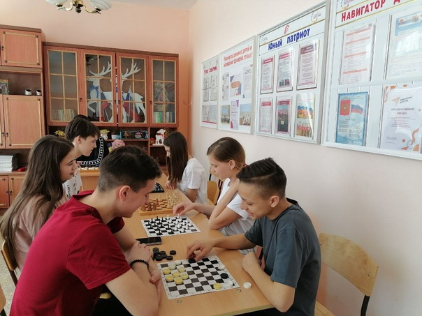 Каникулы - это самое время для занятий по интересам. Ребята с удовольствием играют в шашки и шахматы в центре детских инициатив.