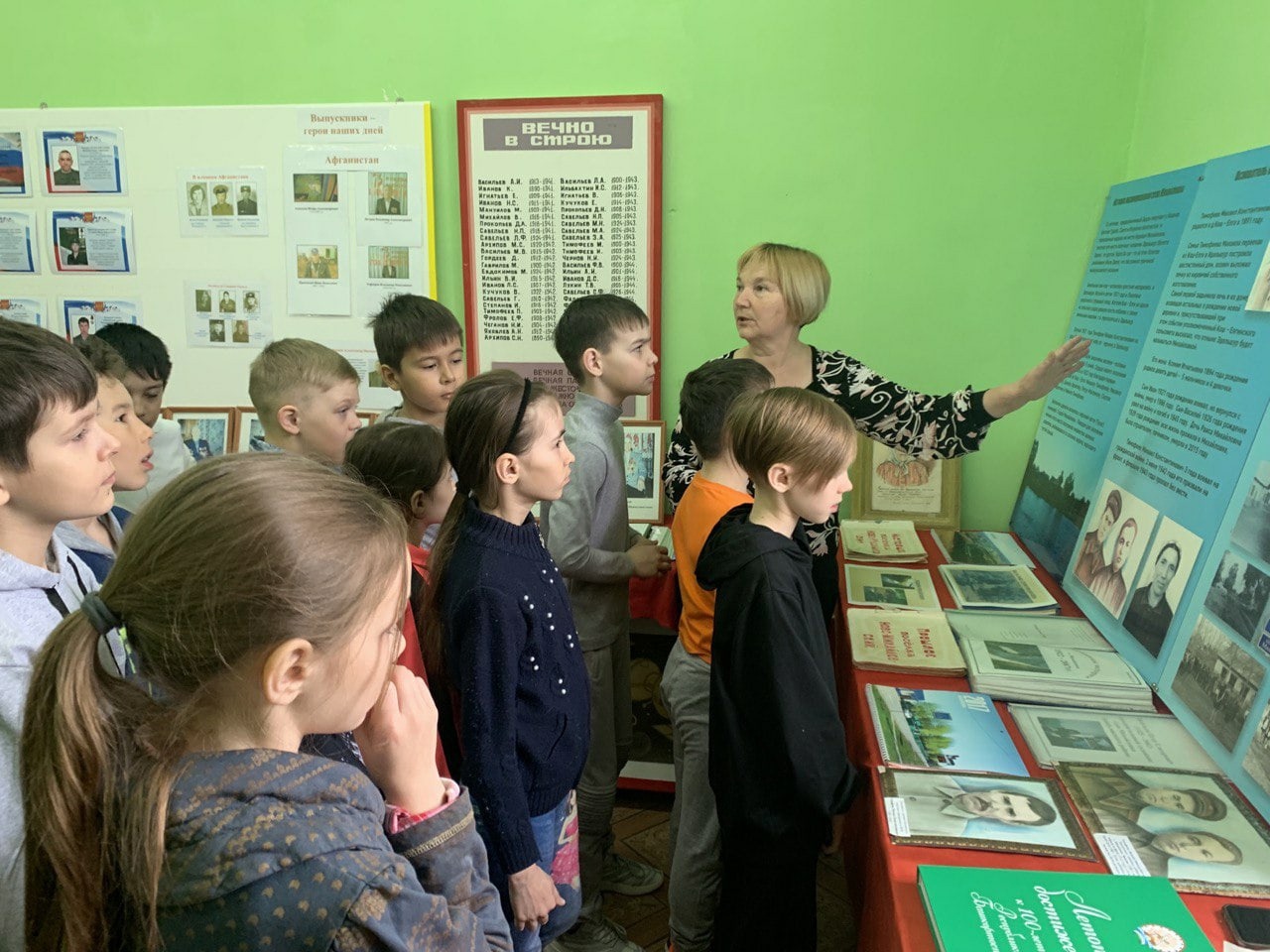 28 марта в рамках Недели детской и юношеской книги Михайлова Нина Яковлевна провела экскурсию в школьный краеведческий музей. Учащиеся начальных классов ознакомились с экспонатами музея, с историей села, героями Бижбулякского района.