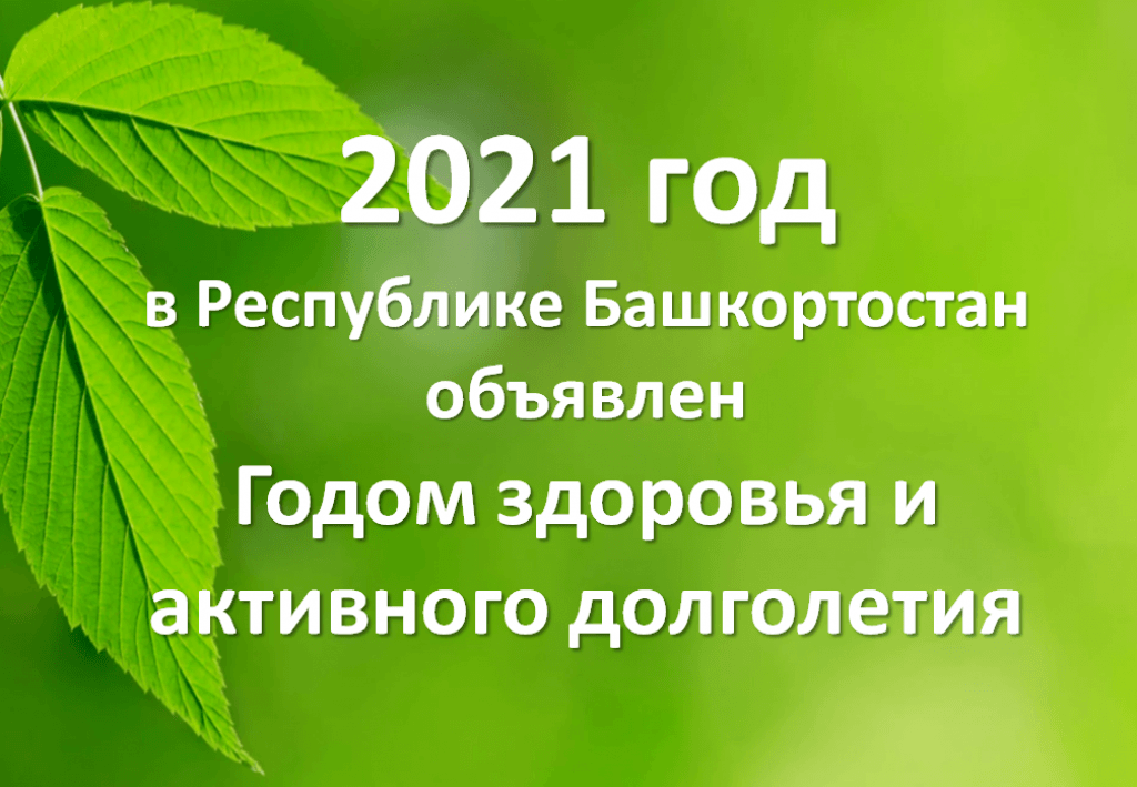 В целях формирования здорового образа жизни, развития массовости физической культуры, спорта и туризма, а также совершенствования системы медицинского обслуживания 2021 год в Республике Башкортостан объявлен Годом здоровья и активного долголетия.